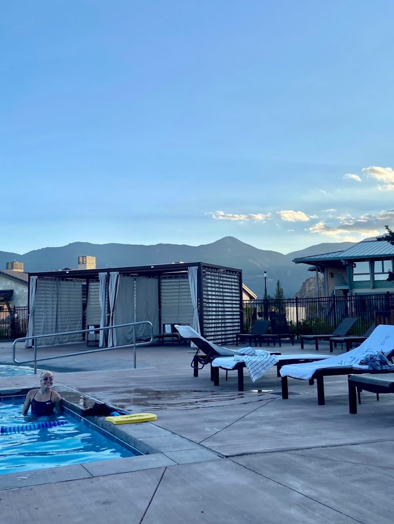 We loved the “adult only” infinity pool with a direct view of the Garden of the Gods Rocks as you can see in our photos. So while Kenzie was working out with Team USA – we chilled at the pool!